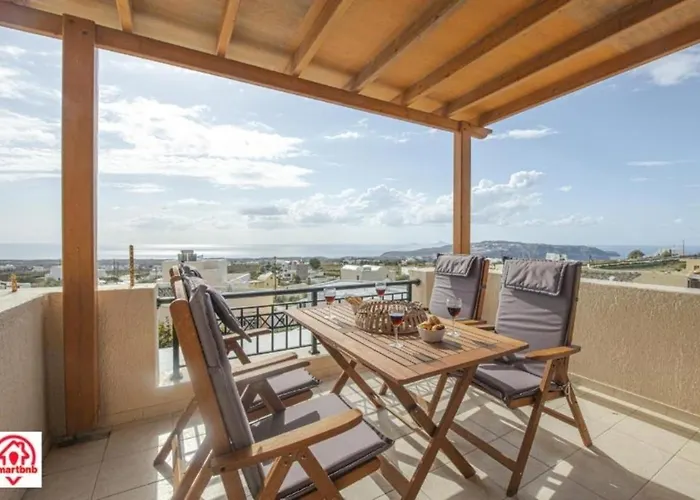 Dit appartement is gelegen op 10 minuten autorijden van het Rode Strand. Te voet bent u binnen 5 minuten in het centrum van Megalochori.